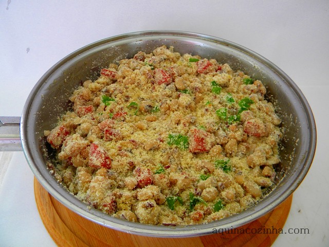 1 xícara (de chá) de farinha de mandioca crua (aquela mais comum e fininha)