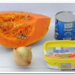 Retire as sementes da abóbora e lave. Coloque a abóbora úmida em um recipiente no micro-ondas e leve para cozinhar. No meu micro-ondas tem a tecla legumes que é só apertar e pronto. Se no seu micro-ondas não tiver essa tecla, vá colocando de 2 em 2 minutos e observando quando cozinha. Se você preferir, como eu disse lá em cima, pode cozinhar no fogão. É só colocar os pedaços de abóbora descascados na panela com água e levar para cozinhar.
