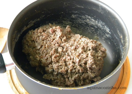 Esquente a manteiga em uma panela e acrescente a carne moída, mexa bem. Deixe a água que vai se formar na carne, secar. Daí frite um pouquinho. Acrescente o alho e a cebola e frite mais. Junte a pimenta do reino e o sal. Acrescente o leite e a farinha de trigo. Misture muito bem. Vai se formar uma bola de carne, mas com calma e espalhando a massa, cozinhe por alguns minutinhos. Retire a massa do fogo e deixe esfriar. Depois da massa fria, modele croquetes.