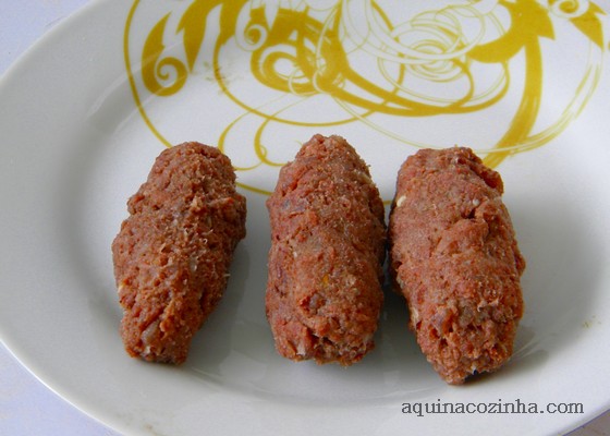 - Eu gosto de colocar o ovo batido e a farinha de rosca em recipientes pequenos, assim não preciso colocar a mão dentro da vasilha para empanar, só balanço o recipiente.